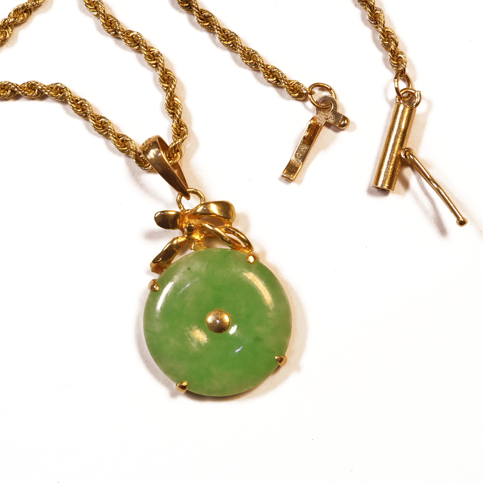 Cadena torzal con dije estilo jade oro amarillo 14 k